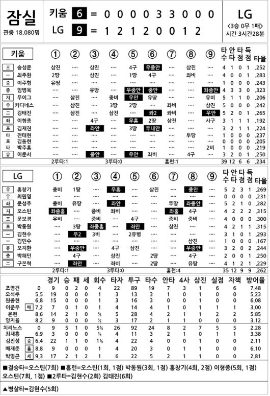 [2025 KBO리그 기록실] 키움 vs LG (5월 13일)