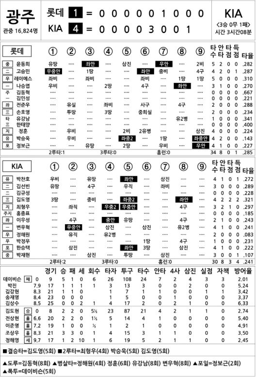 [2025 KBO리그 기록실] 롯데 vs KIA (5월 13일)