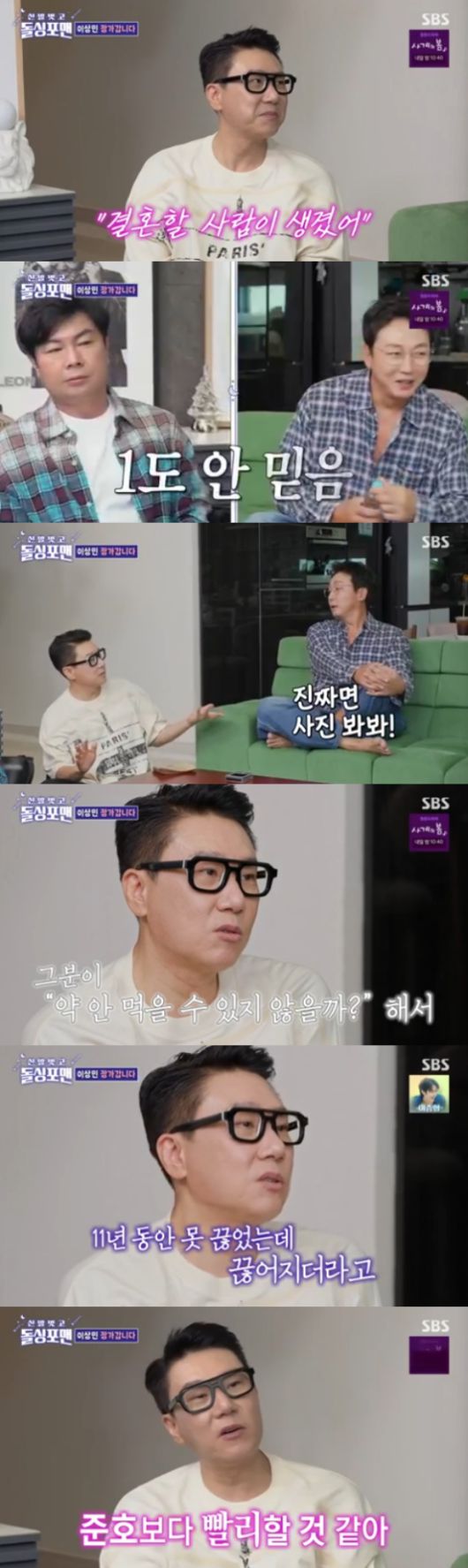 이상민은 아랑곳하지 않고 "결혼할 사람이 생겼고, 준호보다 빨리할 것 같다. 안 믿을 거라는 건 알았는데, 우리가 가장 먼저 알았으면 해서 말한다"고 했다.