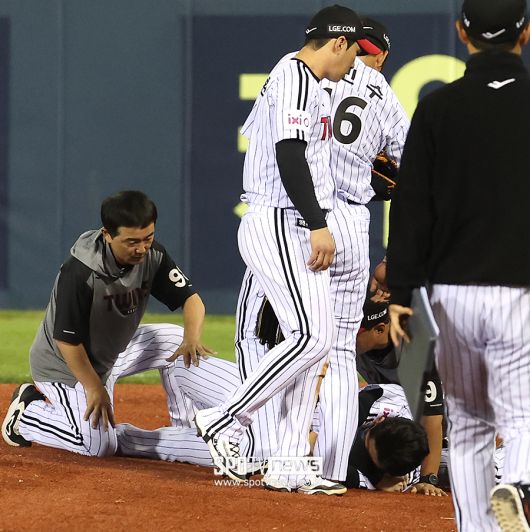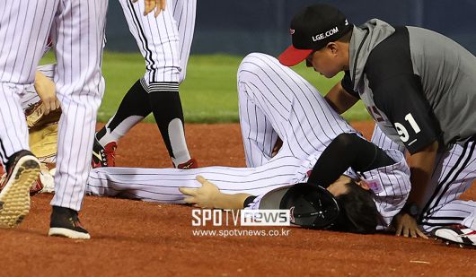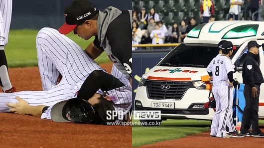 극심한 고통에 홍창기는 무릎을 잡으며 그라운드에 그대로 쓰러졌다. 이후 들것에 실려 병원으로 이송됐다.