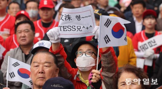 “김문수 테스형” 국민의힘 김문수 대선 후보의 지지자들이 13일 부산 중구 자갈치시장에서 지지 문구가 적힌 종이와 태극기를 들고 유세를 지켜보고 있다. 김 후보는 이날 울산 뉴코아아울렛과 신정시장을 차례로 방문한 뒤 부산으로 이동해 자갈치시장에서 유세를 이어갔다. 부산=장승윤 기자 tomato99@donga.com |