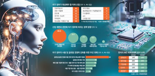 국내 주요 대기업들이 차기 정부에 요구한 핵심 키워드는 하나로 요약된다. ‘기술 없이는 미래도 없다’는 것이다. 차기 정부가 집중적으로 육성해야 할 산업으로 ‘인공지능(AI)’, ‘로봇·자동화’, ‘반도체’가 꼽힌 배경이다. 첨단기술을 육성해 수출 주도의 성장경제 체제를 완성해야 한다는 취지로 읽힌다.