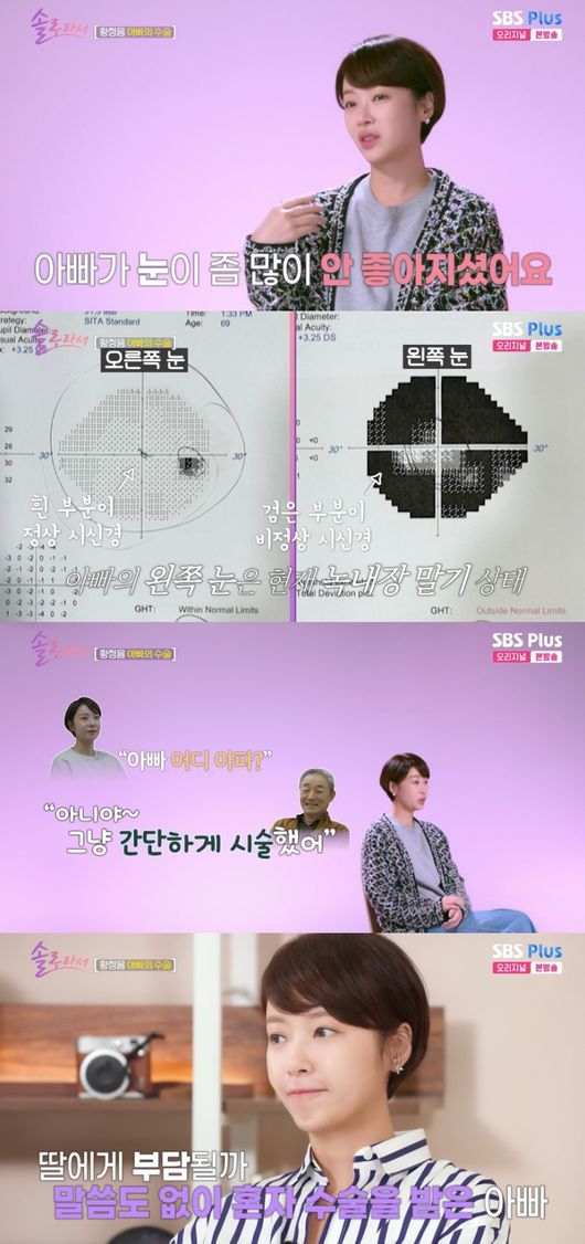 [OSEN=박하영 기자] ‘솔로라서’ 황정음이 ‘실명 위기’ 아버지의 눈 건강에 깜짝 놀랐다.