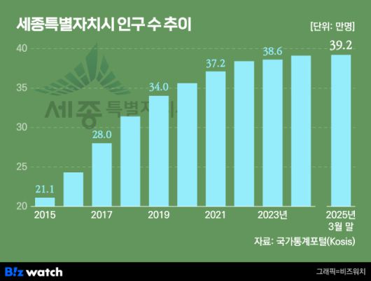 통계청에 따르면 2025년 3월 현재 세종시 인구는 약 39만2000명 수준으로 행정수도 착공 당시 정부가 내건 80만 목표의 절반에도 미치지 못하고 있습니다. 출범 초기엔 매년 3만명 이상 인구가 늘어났으나 최근 수년간은 거의 정체 상태죠.