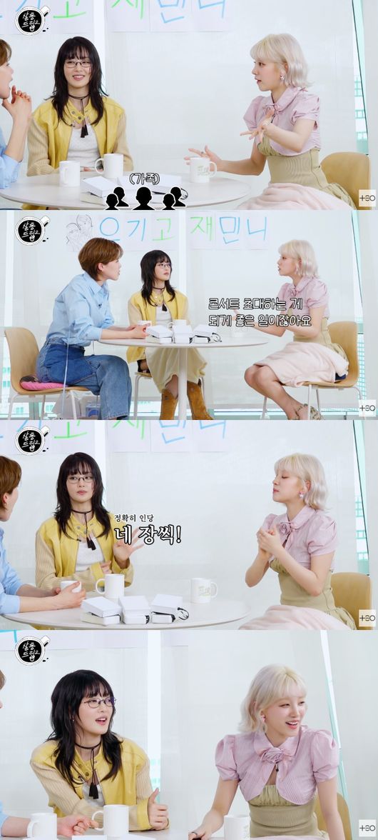 특히 이날 MC인 장도연은 "민니 씨가 사비로 1천만원을 들여서 지인 100명을 콘서트에 초대한다던데 맞냐"라며 신기해 했다. 우기는 이어 "민니 존이 있다. 학교 선배, 가족, 친구 다 거기에 있다"라고 거들었다.