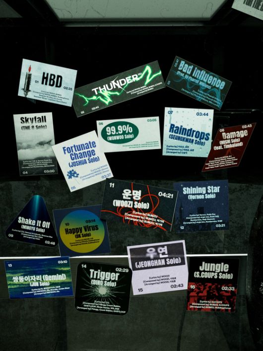 솔로곡 역시 기대를 모은다. 세븐틴이 멤버 전원의 개인곡을 신보에 수록하는 것은 이번이 처음이다. 디에잇의 '스카이폴(Skyfall)', 조슈아의 '포츄네이트 체인지(Fortunate Change)', 원우의 '99.9%', 승관의 '레인드롭스(Raindrops)', 호시의 '대미지(feat. Timbaland)', 민규의 '셰이크 잇 오프(Shake It Off)', 도겸의 '해피 바이러스(Happy Virus)', 우지의 '운명', 버논의 '샤이닝 스타(Shining Star)', 준의 '쌍둥이자리(Gemini)', 디노의 '트리거(Trigger)', 정한의 '우연', 에스쿱스의 '정글(Jungle)'까지 제목에서부터 멤버들의 개성이 돋보인다.