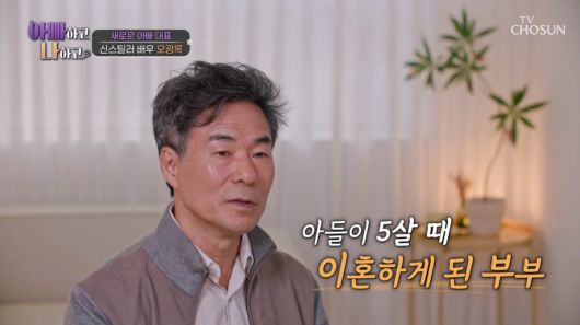 오광록은 "아들이 5살 때 이혼해 30여년간 같이 살지 않았다"고 털어놨다. 이어 "가난이 앞문으로 들어오면 사랑이 뒷문으로 나간다고 하지 않나. 당시 연극 하면서 생활고로 떨어져 살게 됐다. 1982년 데뷔 한 달에 10만원 벌었다"고 밝혔다.