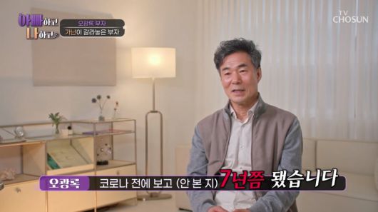 오광록은 아들과는 "코로나 전에 보고 7년간 보지 못했다"고 했다. 그는 "전화해도 잘 안 받고 톡을 해도 답장이 없었다"고 말했다. 연락을 피하는 이유에 대해서는 "모르겠다. 마음의 날씨가 안 좋다고 생각한다"고 전했다.