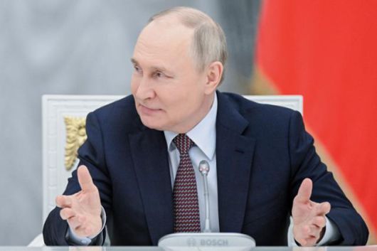 블라디미르 푸틴 러시아 대통령이 13일 모스크바 크렘린궁에서 회의를 주재하고 있다. 모스크바=AP 연합뉴스