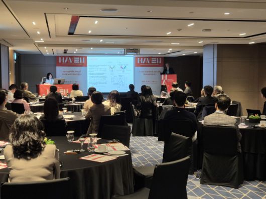 [서울=뉴스핌] 김신영 기자 = JW중외제약은 지난 9일부터 이틀간 서울 송파구 소재 소피텔 앰배서더 서울에서 A형 혈우병 치료제 '헴리브라(성분명 에미시주맙)'의 'HAVEN 심포지엄'을 개최했다. 임상 결과와 치료 현장의 경험을 공유하기 위해 마련된 이번 심포지엄에는 혈우병 관련 국내 의료진이 참석했다. [사진=JW중외제약] 2025.05.14 sykim@newspim.com |