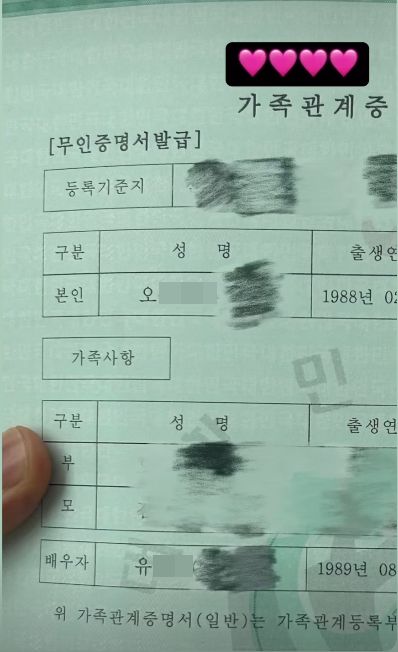 경수 역시 자신의 SNS에 혼인신고 후 옥순의 이름이 '배우자'로 들어간 가족관계증명서를 공개하며 기쁜 마음을 전했다.