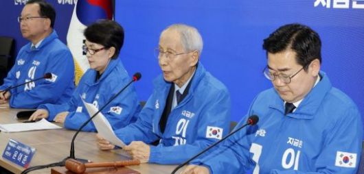 윤여준 더불어민주당 상임총괄선대위원장이 서울 여의도 중앙당사에서 열린 중앙선거대책위원회의에서 발언하고 있다. 김현민 기자 |
