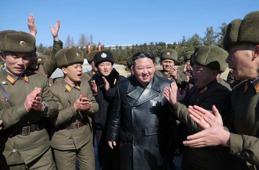 지난 2월 김정은 북한 국무위원장이 김일성정치대학을 방문한 모습. 노동신문=뉴스1 |