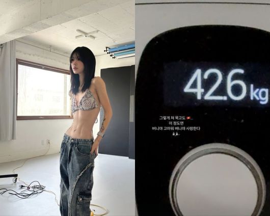 그러면서 몸무게 42.6㎏가 찍힌 체중계 사진을 인증했다. 최준희의 키는 170㎝다.