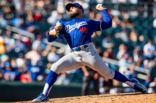 알렉 감보아가 2024년 2월 미국 애리조나주 솔트 리버 필드에서 로스앤젤레스 다저스의 스프링캠프 투수로 등판하여 콜로라도 로키스를 상대하고 있다. 사진=Getty Images=연합뉴스 제공 |