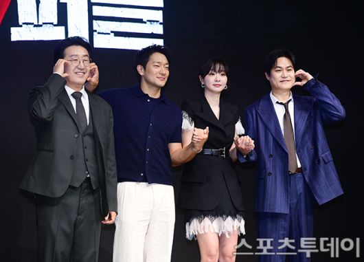[스포츠투데이 권광일 기자] 배우 현봉식, 손석구, 김다미, 김성균이 14일 오전 서울 종로구 JW 메리어트 동대문 스퀘어 서울에서 열린 디즈니+ '나인 퍼즐' 제작발표회에 참석해 포즈를 취하고 있다. 2025.05.14. [스포츠투데이 권광일 기자 ent@stoo.com]
