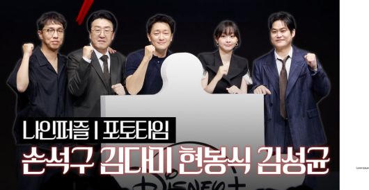 배우 김다미, 손석구, 현봉식, 김성균이 14일 서울 종로구 JW 메리어트 동대문 스퀘어 서울에서 열린 디즈니+ 오리지널 시리즈 '나인 퍼즐' 제작발표회에 참석했다.