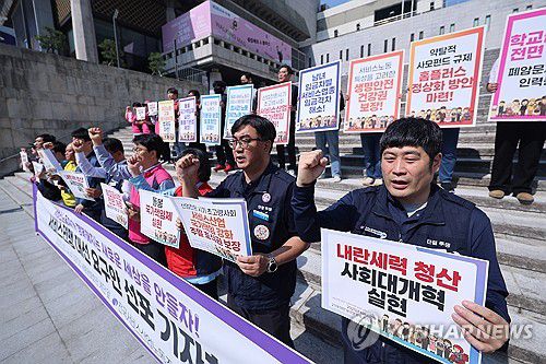 민주노총 공공운수노조 사회서비스협의회도 광화문 월대 앞에서 기자회견을 열고 돌봄 공공성 강화를 요구했다.