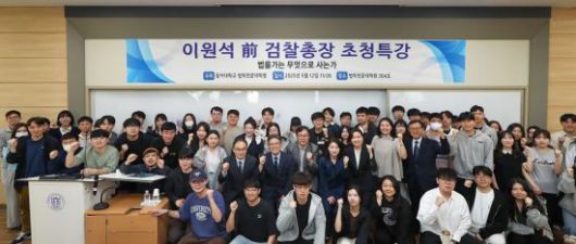 동아대 로스쿨이 이원석 전 검찰총장 초청 특강을 개최하고 기념촬영하고 있다. |