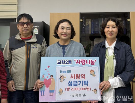 14일 교현2동에 따르면 김씨는 "시각장애인 어르신들을 위해 써 달라"며 충주시각장애인경로당에 200만원을 기탁했다.
