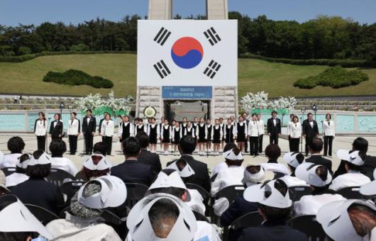 2024년 5월 18일 광주 북구 국립 5‧18민주묘지에서 열린 제44주년 5‧18민주화운동 기념식에서 기념공연이 펼쳐지고 있다. 광주=서재훈 기자 |