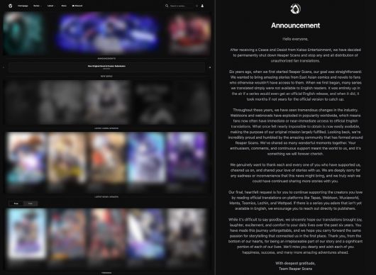 리퍼스캔스는 2019년부터 6년간 한국 대표 인기 웹툰과 웹소설을 다수 불법 유통해온 곳으로, 유저 월평균 방문수가 1000만회에 달하는 대형 웹사이트였다. 전문 번역 그룹을 운영하며 양질의 불법 번역물을 유통해온 곳으로 악명높다.