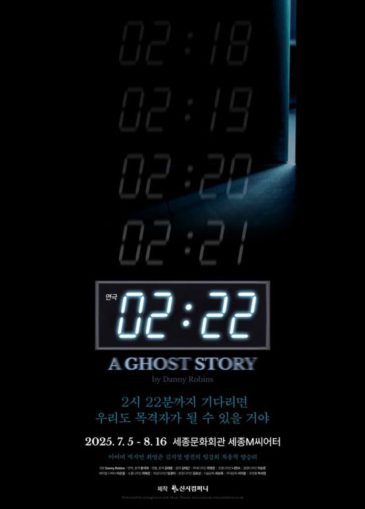 영혼이라는 초자연적 현상을 두고 각자 다른 신념과 믿음 그리고 회의론으로 충돌하는 연극 '2시 22분 - A GHOST STORY'는 오는 7월 5일부터 8월 16일까지 단 6주간 세종문화회관 M씨어터에서 만나볼 수 있다.