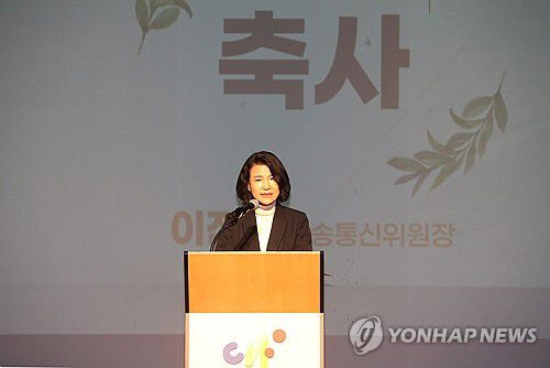 (서울=연합뉴스) 이진숙 방송통신위원회 위원장이 14일 서울시청자미디어센터에서 열린 '시청자미디어재단 10주년 행사'에서 축사를 하고 있다. 2025.5.14 [방송통신위원회 제공. 재판매 및 DB 금지]