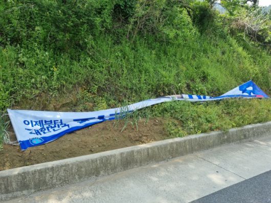 경남 하동군에서 더불어민주당 이재명 대통령 선거 후보 현수막이 훼손돼 경찰이 수사에 나섰다.