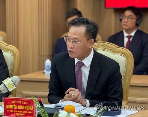 (서울=연합뉴스) 14일(현지시간) 베트남 북부 흥옌성에서 열린 '2025 미트 코리아' 행사에서 응우옌 흐우 응이어 베트남 공산당 흥옌성 당서기가 발언하고 있다. 2025.5.14 [주베트남 한국대사관 제공. 재판매 및 DB 금지]