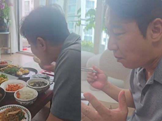 영상 속 심현섭은 정갈하게 차려진 생일상에서 맛있게 밥을 먹고 있다.