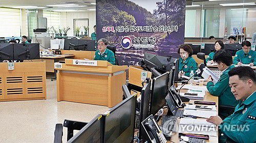 (대전=연합뉴스) 임상섭 산림청장(왼쪽)이 14일 정부대전청사 중앙재난산림상황실에서 '2025년 전국 산사태 방지 관계관 대책회의'를 주재하면서 "영남지역 산불 피해지에서 2차 피해가 발생하지 않도록 집중 관리해야 한다"고 말하고 있다. 2025.5.14 [산림청 제공. 재판매 및 DB 금지]