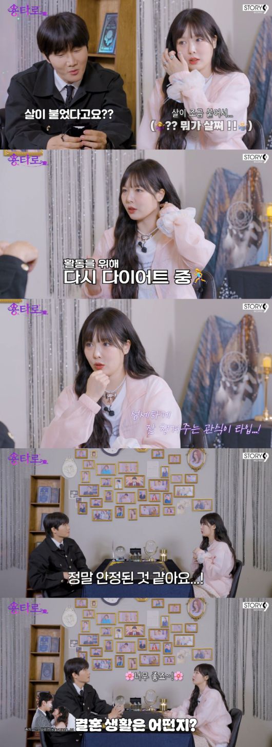 결혼 생활의 가장 좋은 점에 대해서는 "(결혼 전에는) 불면을 달고 지냈는데 이제는 잠을 잔다. (남편이) 한 공간에 같이 있다는 것만으로도 안정을 주는 것 같다"며 애정을 드러냈다.