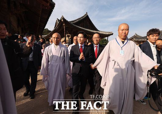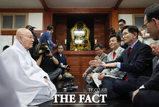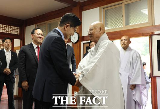 [더팩트ㅣ임영무 기자] 김문수 국민의힘 대선 후보가 14일 오후 경남 양산 통도사를 찾아 대한불교조계종 종정 중봉 성파 대종사를 예방하고 있다.