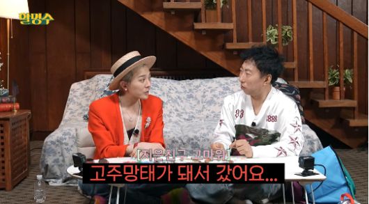 앞서 지드래곤은 아이유의 콘서트에 게스트로 섰던 바 있다. 박명수가 "감사의 표시는 뭐였냐"고 묻자 지드래곤은 "지은 친구가 항상 잘 챙겨준다. 냉장고가 하나 와 있길래 보니 주류 광고를 할 때 주류를 가득 채워서 줬다. 군대 가기 전에 고주망태가 돼서 (군대에) 갔다"고 말했다.