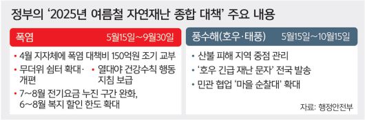 올여름은 6월부터 고온 현상이 나타날 것이란 전망이 나오면서 정부가 전년 대비 5일 당겨 폭염 대책 등 자연재난 종합대책을 시행한다. 그간 폭염 대책은 매해 5월20일부터 운영에 들어갔는데 올해는 5월15일 시작하기로 했다.