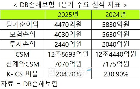 DB손보 관계자는 "LA산불 등 영향으로 손해율이 전년동기대비 10.1%p 증가하며 일반보험은 370억원 손실을 기록했다"라며 "자동차보험은 요율 인하에 따른 대당경과보험료 감소 지속 등으로 손해율이 상승하며 전년동기대비 51.4% 감소한 458억원을 기록했다"라고 말했다.