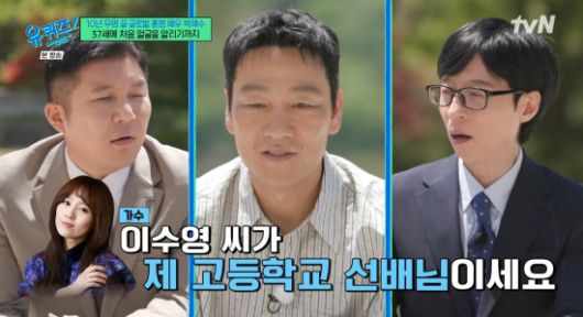 박해수는 "가수 이수영 씨가 제 고등학교 선배님이다. 연극부를 소개한다고 저희 반에 들어오셨는데 '방황하는 별들'이라는 연극부 이름이었다"라며 이수영을 언급했고, 유재석은 "이수영 씨가 그렇게 이야기를 하셨다고 한다. 당시에 해수 씨가 너무 잘생겨서 연극부로 뽑았고 '해수야 넌 연기 안 해도 된다. 존재만으로 빛이 나'"라며 덧붙였다.