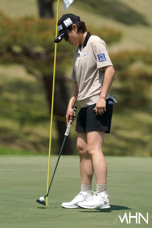 (MHN 춘천, 박태성 기자) 14일 강원도 춘천시에 위치한 라데나 골프클럽(파72ㅣ6,384야드)에서 2025시즌 유일한 매치플레이 '제17회 두산 매치플레이'(총상금 10억 원, 우승 2억 5천만 원) 1라운드 조별리그가 열렸다. 박주영(동부건설)이 12번홀 경기를 펼치고 있다. <저작권자 Copyright ⓒ MHN / 엠에이치앤 무단전재 및 재배포 금지>