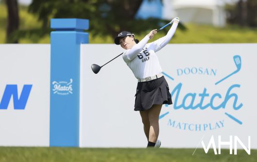 (MHN 춘천, 박태성 기자) 14일 강원도 춘천시에 위치한 라데나 골프클럽(파72ㅣ6,384야드)에서 2025시즌 유일한 매치플레이 '제17회 두산 매치플레이'(총상금 10억 원, 우승 2억 5천만 원) 1라운드 조별리그가 열렸다. 안선주(만수정)가 1번홀 경기를 펼치고 있다. <저작권자 Copyright ⓒ MHN / 엠에이치앤 무단전재 및 재배포 금지>