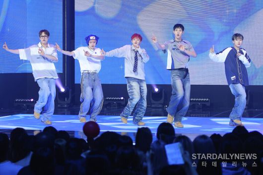 티아이오티 금준현-신예찬-최우진-홍건희-김민성이 무대를 선보이고 있다.