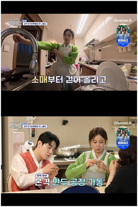 14일 방영한 채널A 예능 '요즘 남자 라이프 신랑수업'(이하 '신랑수업')에서는 은가은의 시가 방문이 그려졌다. 은가은은 녹색 저고리에 홍색 치마를 입어 새색시 분위기를 단단히 냈다. 본래도 고운 외모는 수수한 화장과 새색시 한복으로 빛을 발했다.