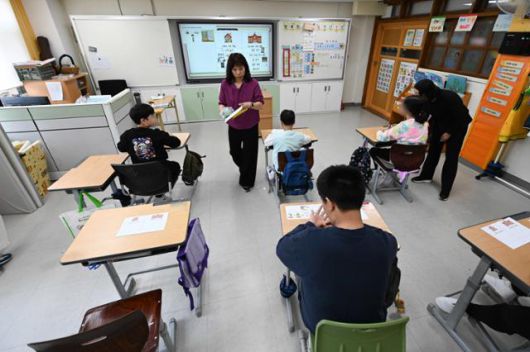 12일 오후 1시쯤. 교실 밖으로 비행기가 보이자 학생 두 명이 창문으로 달려갔다. 학생들이 수업 중간에 자리를 박차고 일어났지만 교사 이길선(46)씨는 놀라거나 당황하지 않았다. "자, 비행기 지나갔으니 다시 앉자"며 부드럽게 아이들을 이끌었다.