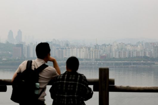 구름이 많아 흐린 날씨를 보인 11일 서울 마포구 하늘공원에서 시민들이 한강변을 바라보고 있다. (사진=연합뉴스) |