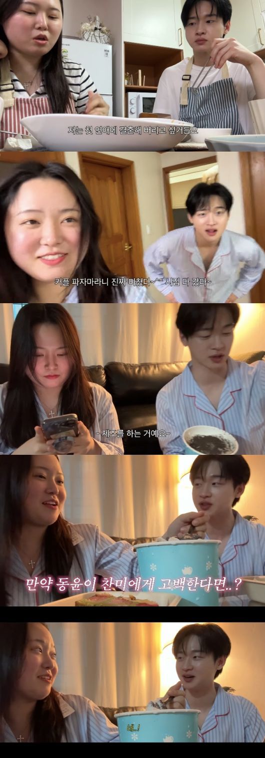 식사 후 커플 파자마로 갈아입은 두 사람. 찰스엔터는 ‘시집 다 갔다’라는 자막으로 극한의 행복함을 드러냈다. 이들은 이후 디저트를 먹으며 상황극을 이어갔다. 고백 상황극을 해달라는 찰스엔터의 부탁에 남윤수는 “결혼을 전제로 교제를 해보면 어떨까. 평생을 함께 해야 한다”라고 진심을 다해 연기하는 모습을 보였다.