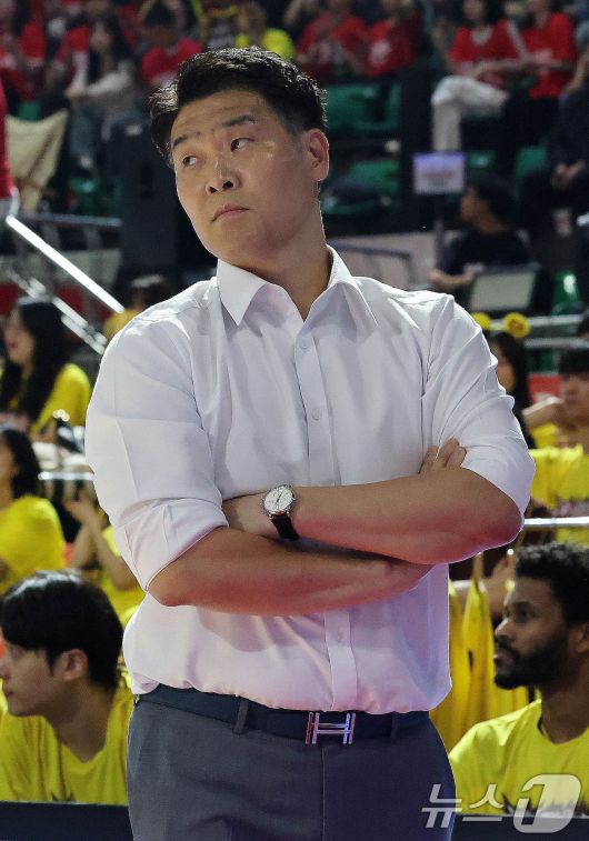 13일 오후 서울 송파구 잠실학생체육관에서 열린 '2024-25 KCC 프로농구 챔피언결정전 5차전' 창원 LG 세이커스와 서울 SK 나이츠의 경기에서 LG 조상현 감독이 경기를 지켜보고 있다. 2025.5.13/뉴스1 ⓒ News1 박세연 기자 |