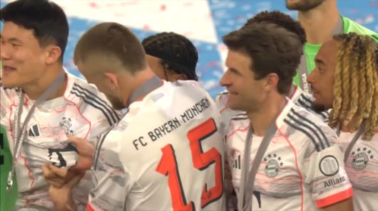 경기 후 본격적인 축제가 시작됐다. 바이에른 선수들은 한 명씩 우승 메달을 전달받았다. 부상 관리를 위해 이날 경기에서 제외된 김민재도 밝은 얼굴로 메달을 목에 걸었다.
