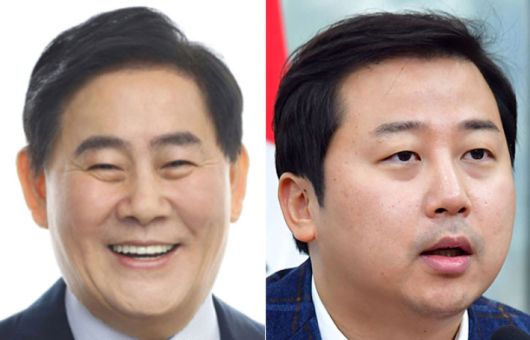 최경환 전 경제부총리(왼쪽)와 국민의힘 장예찬 전 최고위원. 연합뉴스·윤창원 기자 |