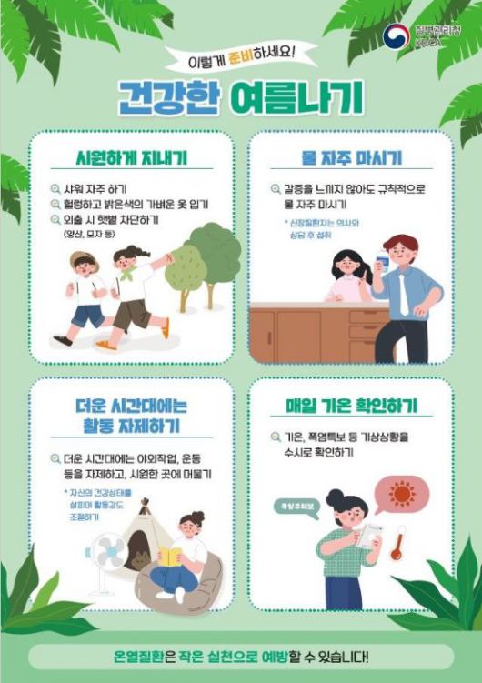 정태영 대전시 체육건강국장은 "온열질환은 기본 수칙만 잘 지켜도 충분히 예방 가능하다"며 폭염특보 발령 시 건강관리에 각별히 유의해줄 것을 당부했다.