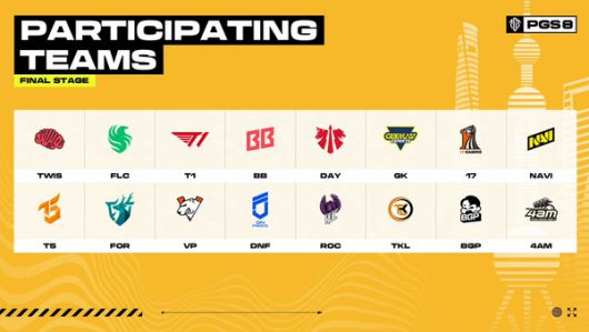 파이널 스테이지는 16일부터 18일까지 열린다. 그룹 스테이지를 통과한 16팀이 사흘간 18개 매치를 통해 점수를 겨룬다. 가장 높은 순위를 달성한 팀이 'PGS 8'의 챔피언으로 등극하게 된다. 모든 경기는 유튜브, 치지직, 네이버TV 등에서 생중계된다.